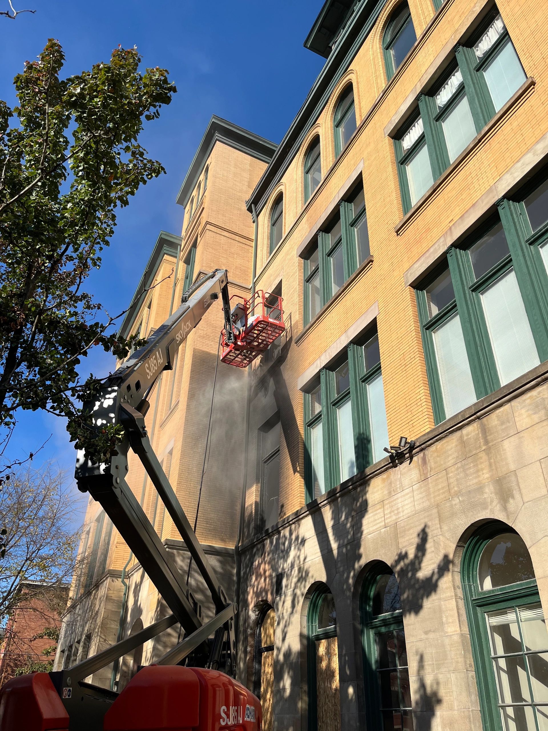 Restore the beauty of your structure with our fire damage restoration service service Pittsburgh, Ohio, West Virginia, and Maryland. Remove soot, debris, fire damage and remaining residue in a safe and effective way. Pittsburgh sandblasting, abrasive blasting, dustless blasting near me in Pittsburgh.